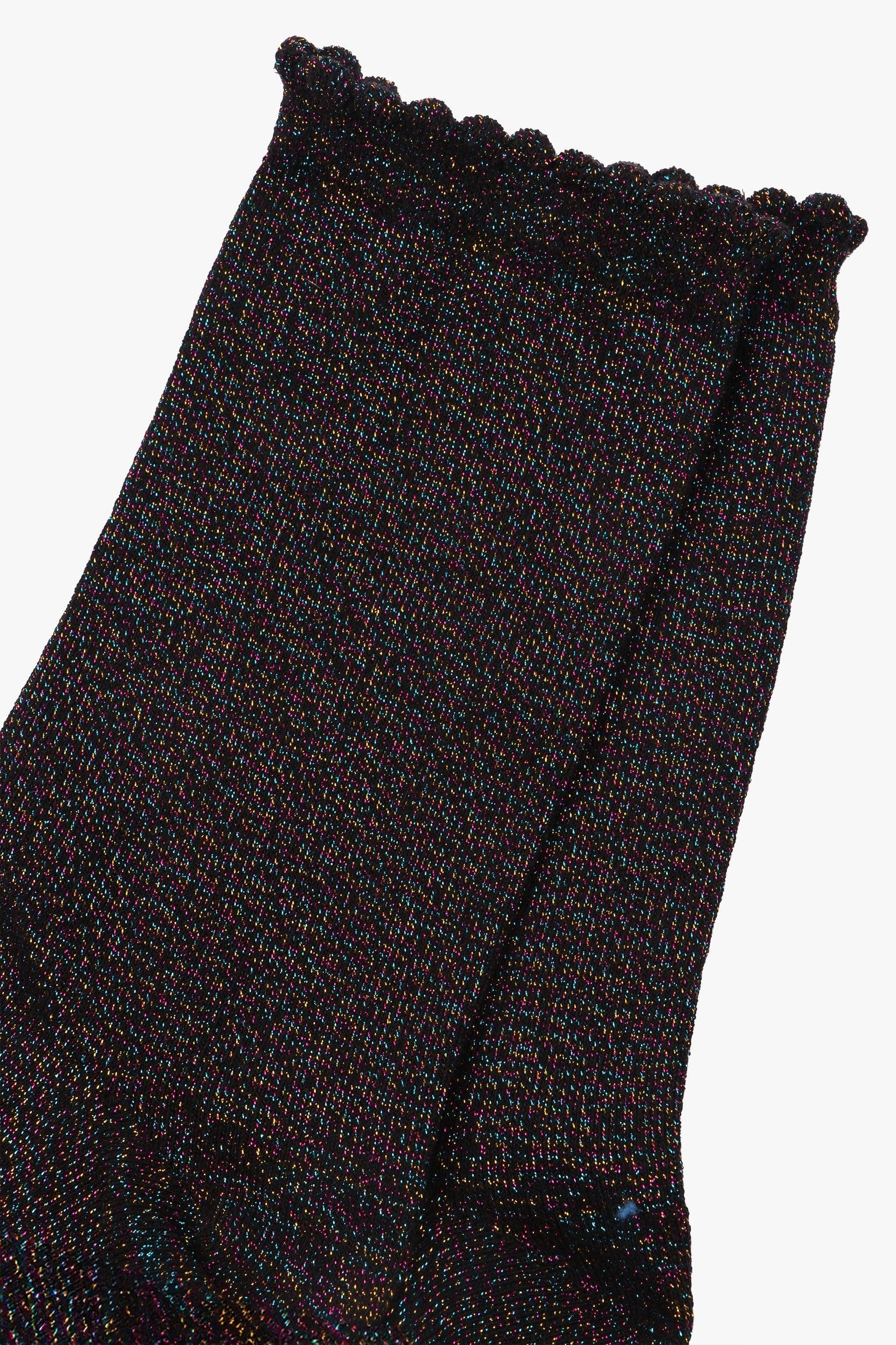 Black Glitter Socks Rainbow Ankle Socks with Scalloped Cuff