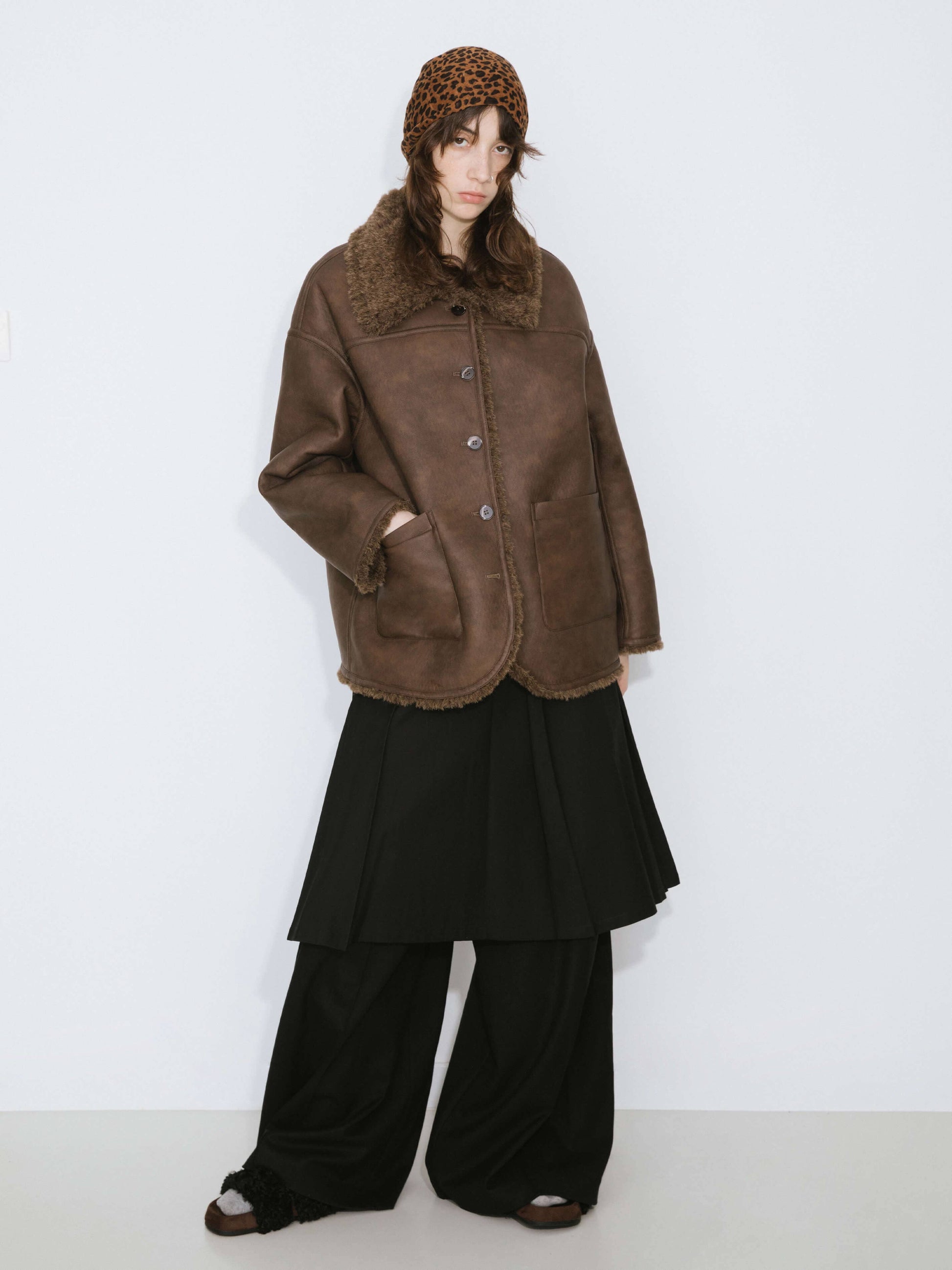 Brown Mid-length Boxy Coat