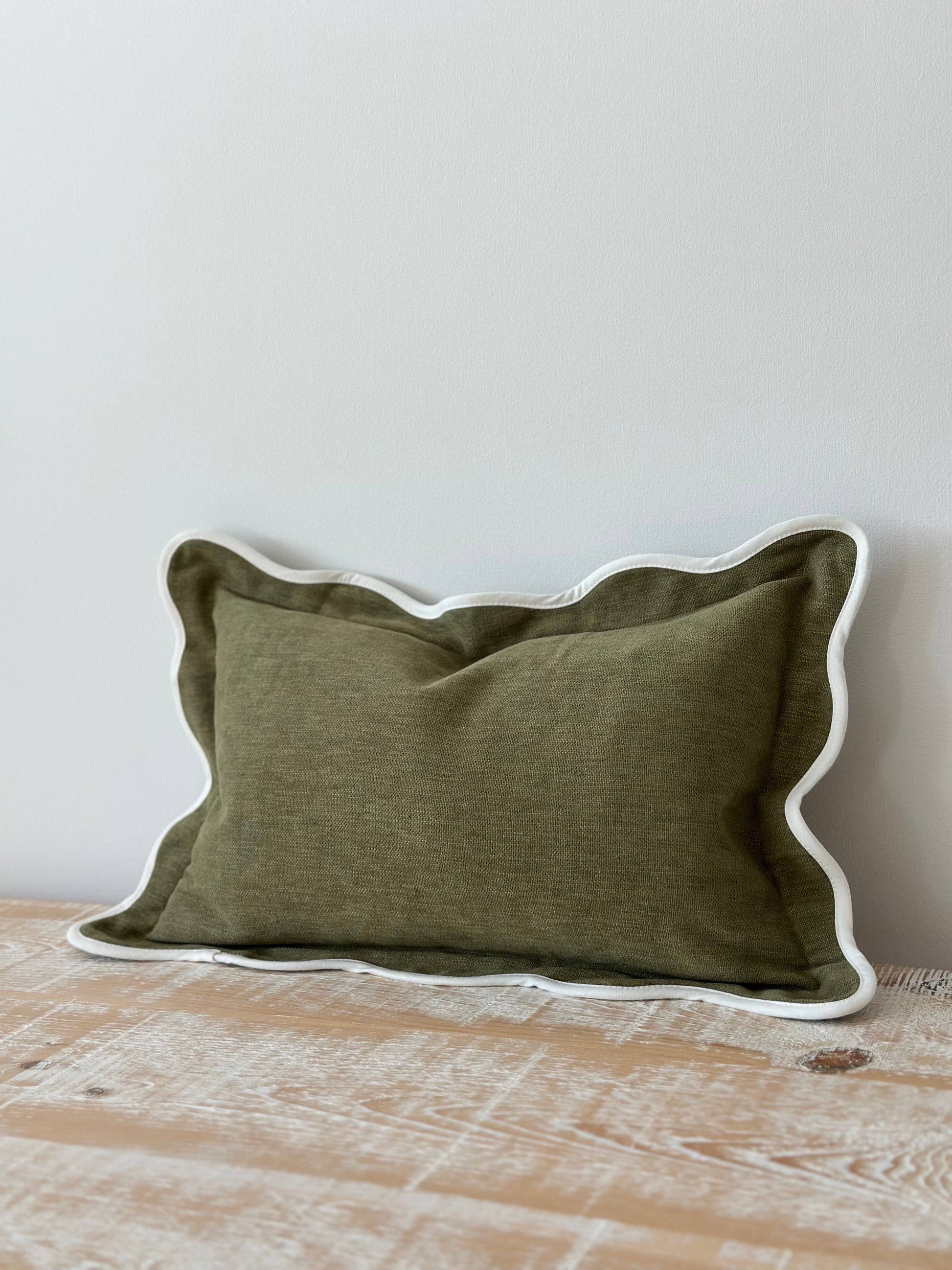 Chloe Olive Scalloped Edge Cushion 50x30