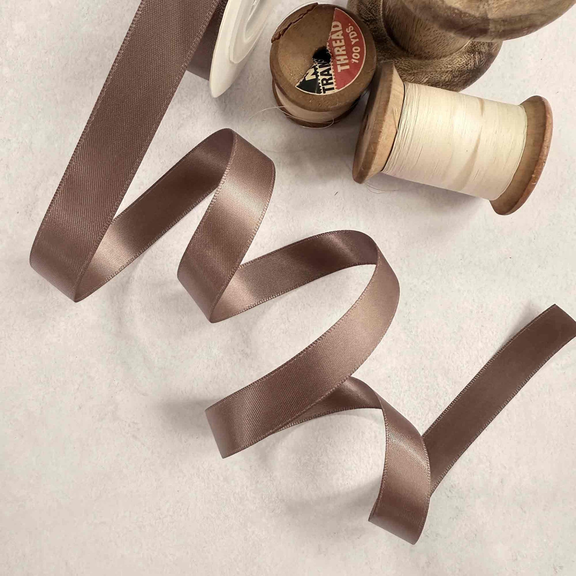 A beautiful minky brown satin ribbon that works beautifully with neutral tones.
