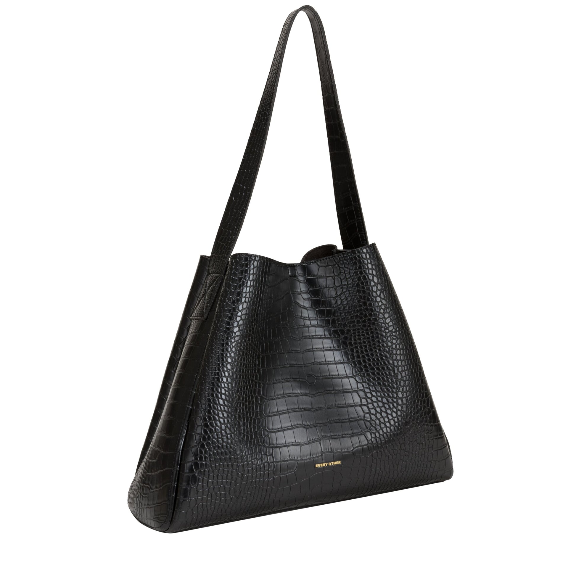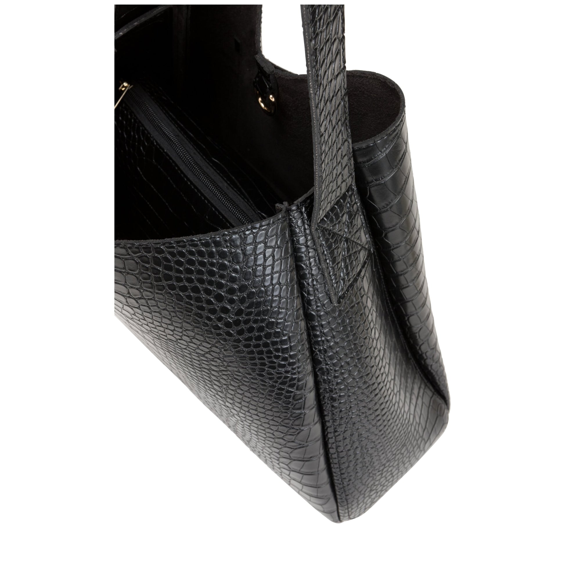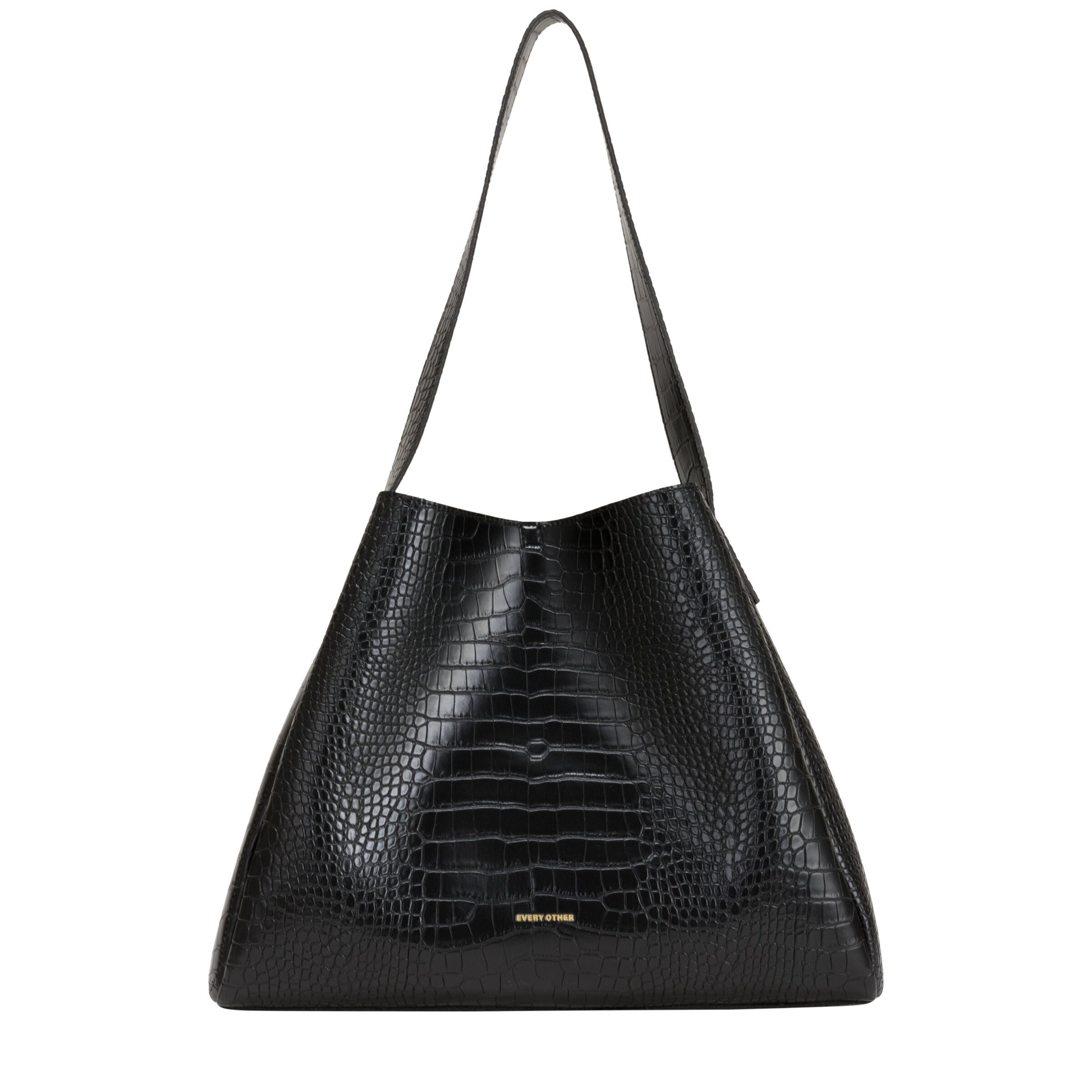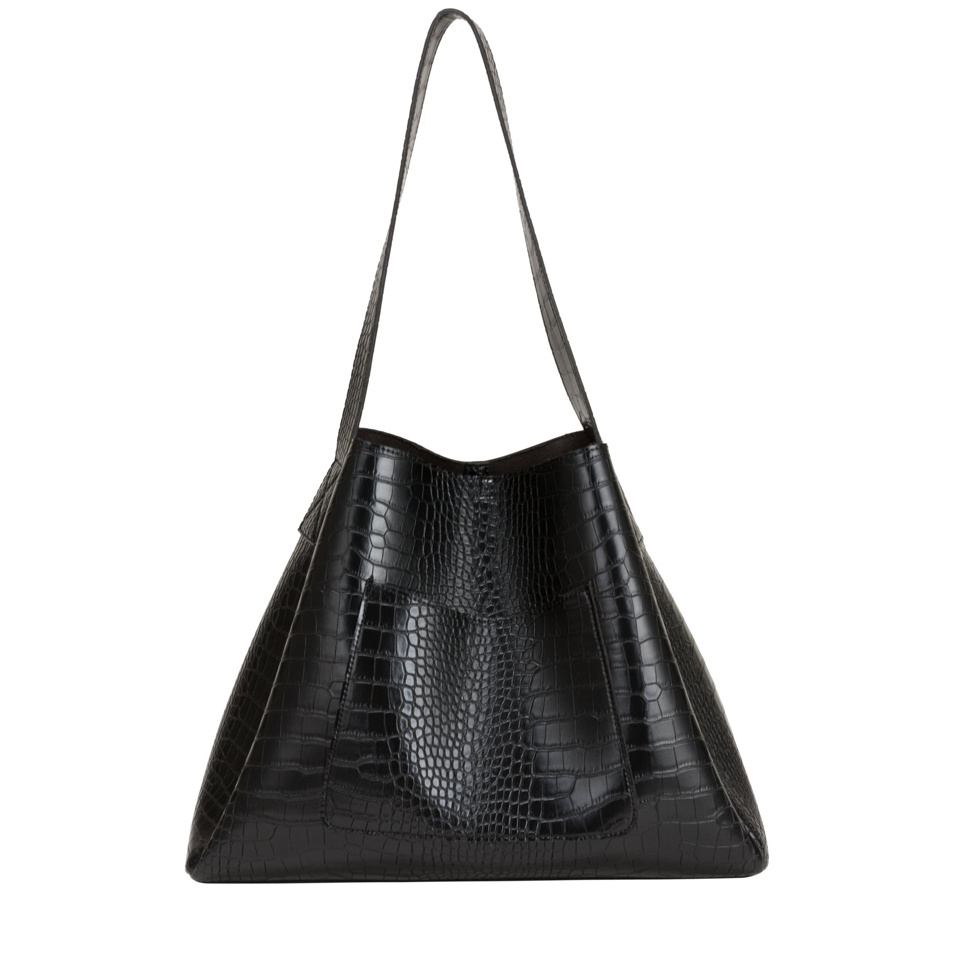 This spacious tote bag features a slouchy design crafted from faux leather with a sophisticated croc pattern. Ideal for professional settings and daily wear, it includes a coordinating pouch for organised storage inside.