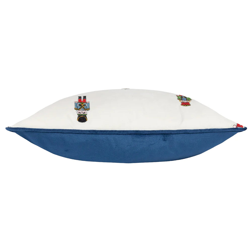 Transform your festive décor with this charming cream nutcracker cushion, expertly crafted with intricate embroidery that captures holiday magic. Featuring a luxurious velvet reverse and elegant piped edging, it's the perfect accent piece for any room. Best of all, it arrives complete with a premium feather filler and concealed zip closure - no assembly required, just unwrap and display. Bring timeless Christmas elegance to your home instantly.