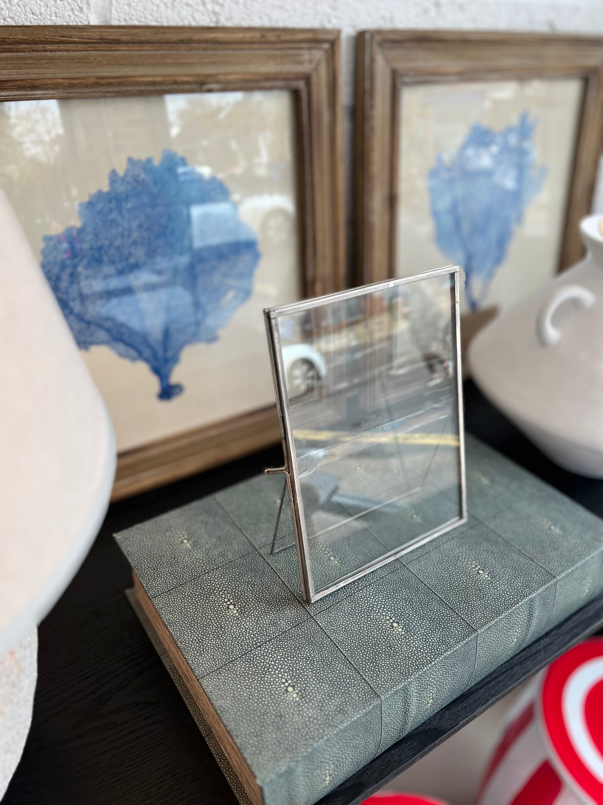 Beautiful framed blue coral prints in a rustic wood frame. Set of 2
