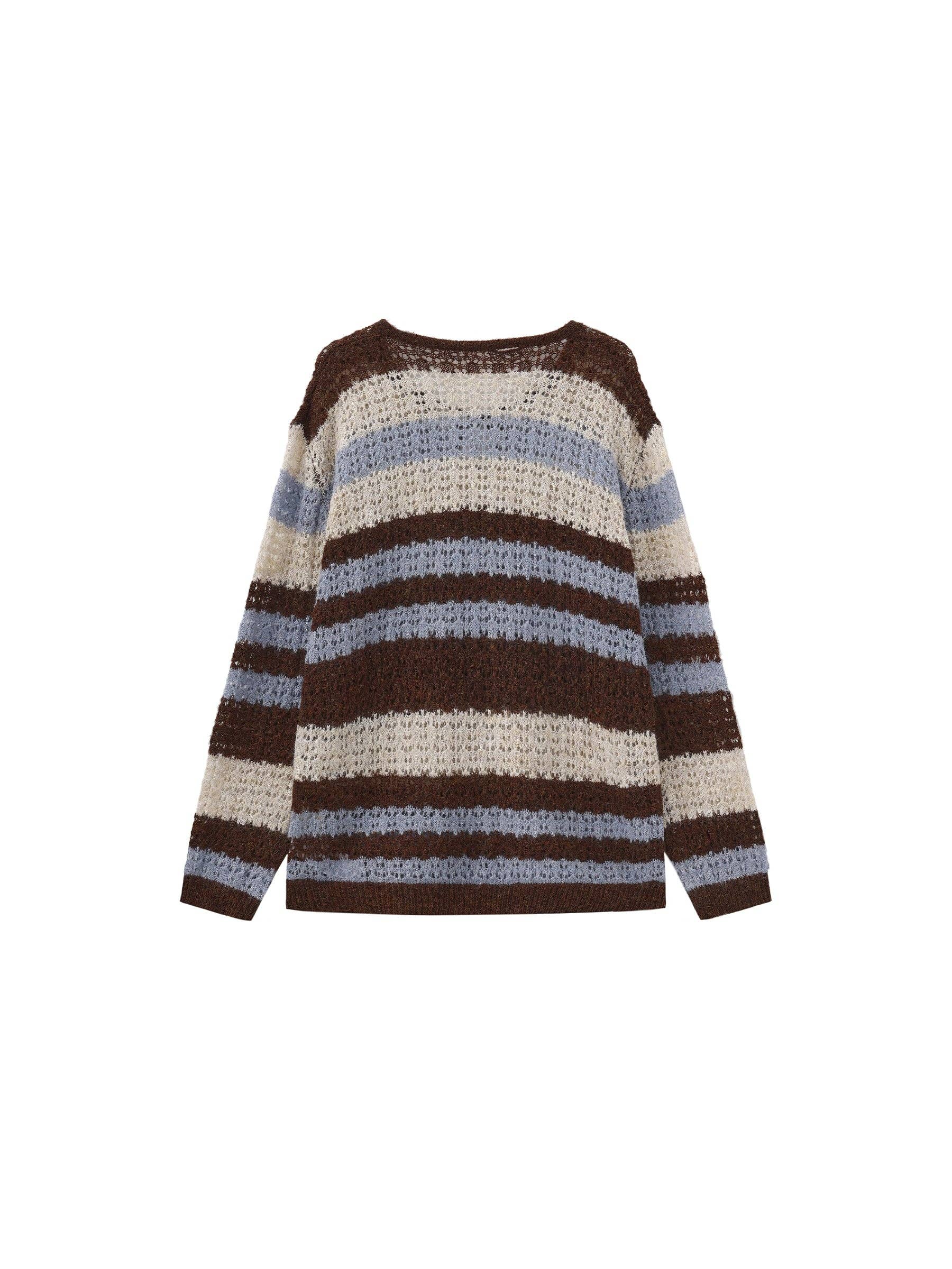 Striped Colour-Block Open-Knit Sweater