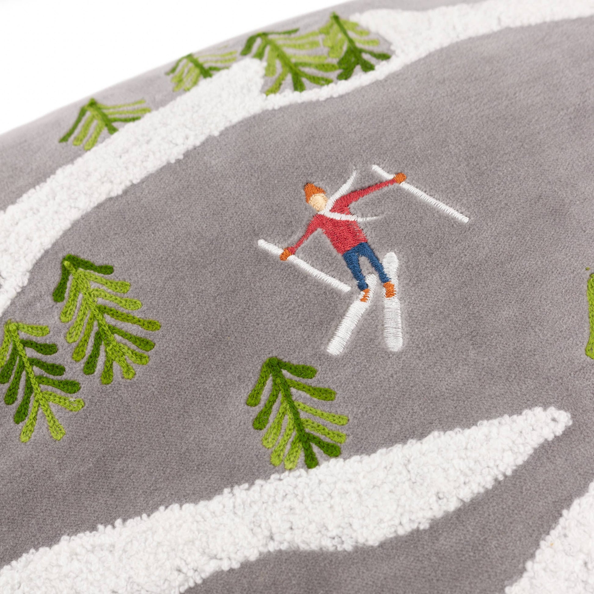 The best of the season, Christmas, is for celebrating, and this design is a true celebration. All the trimmings and a generous size. Keeping a festive element in our homes has never been so easy with the Winter Alpine cushion. Featuring an embroidered and appliqué detailed scene of skiers winding down an Alpine Ski cliff, this cushion is complete with a plain reverse and Oxford Flange edge.