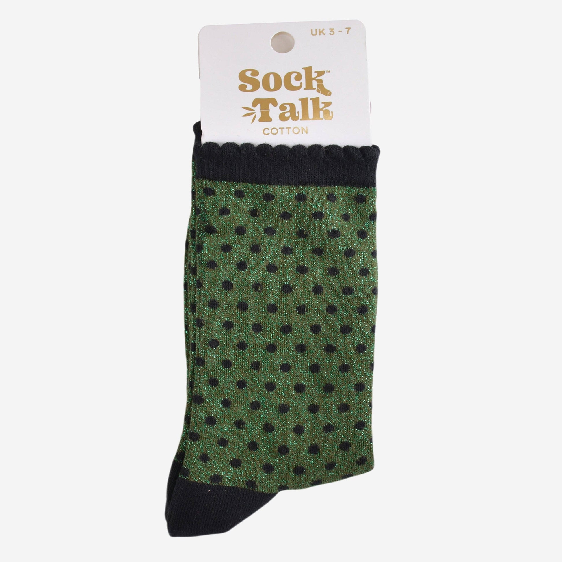 Women's Glitter Socks - Khaki/Black, Small Polka Dot