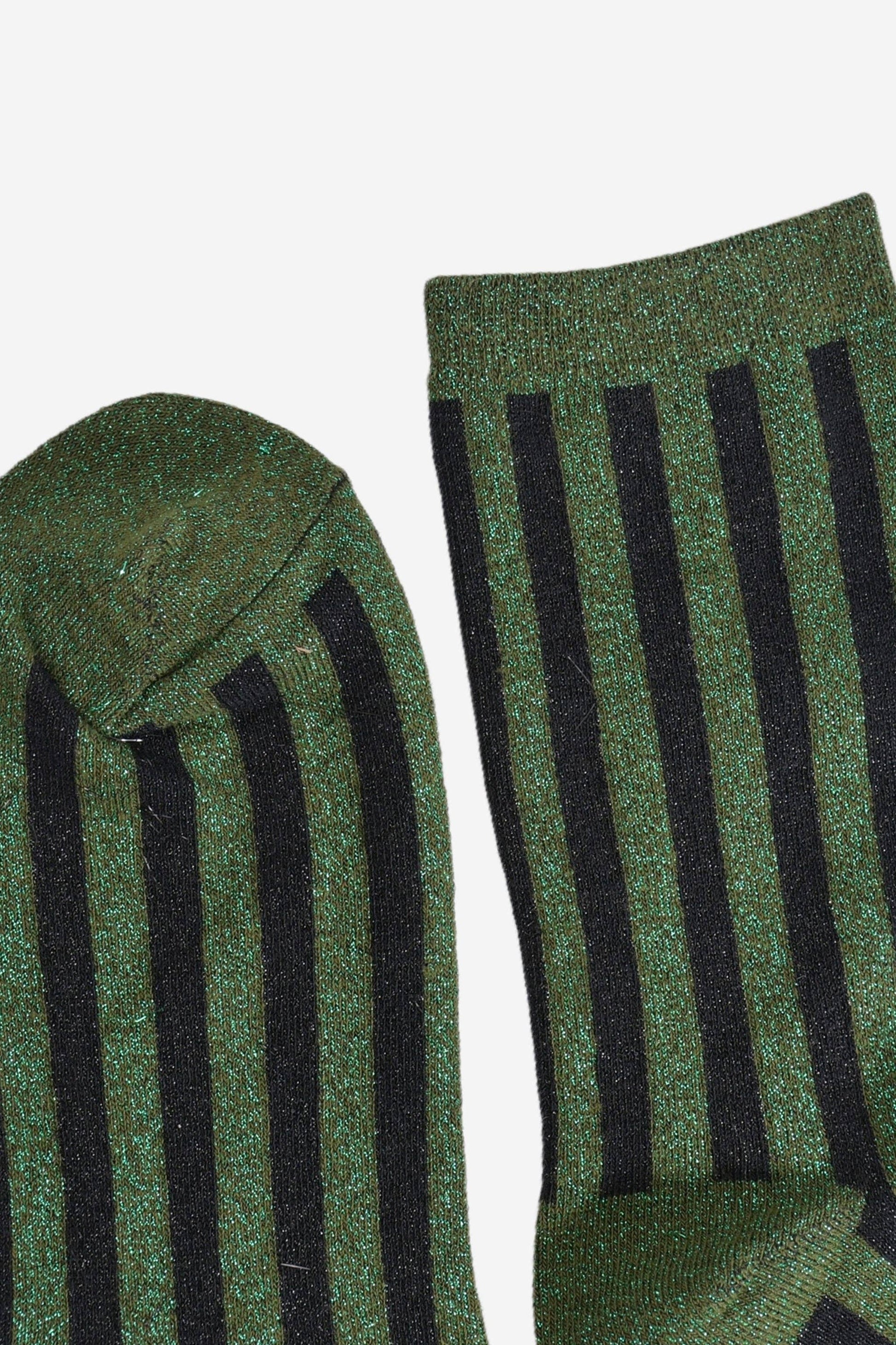 Women's Glitter Socks - Khaki/Black, Vertical Stripe