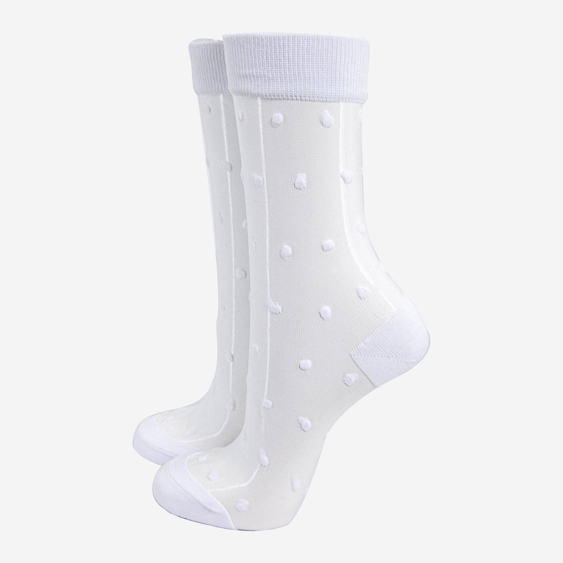 Elevate your sock drawer with these sophisticated sheer ankle socks, designed for those who appreciate understated elegance. The transparent nylon blend showcases a timeless polka dot motif, offering a refined yet playful accent to any outfit. Crafted from a delicate composition of 45% nylon, 35% polyester, and 20% cotton, these socks deliver breathable comfort throughout the day. The lightweight, breathable construction makes them an excellent choice for warmer months or layering beneath footwear. Available in UK sizes 3-7 (EU 36-40, US 5-9), these versatile ankle socks seamlessly transition from casual to smart-casual styling.